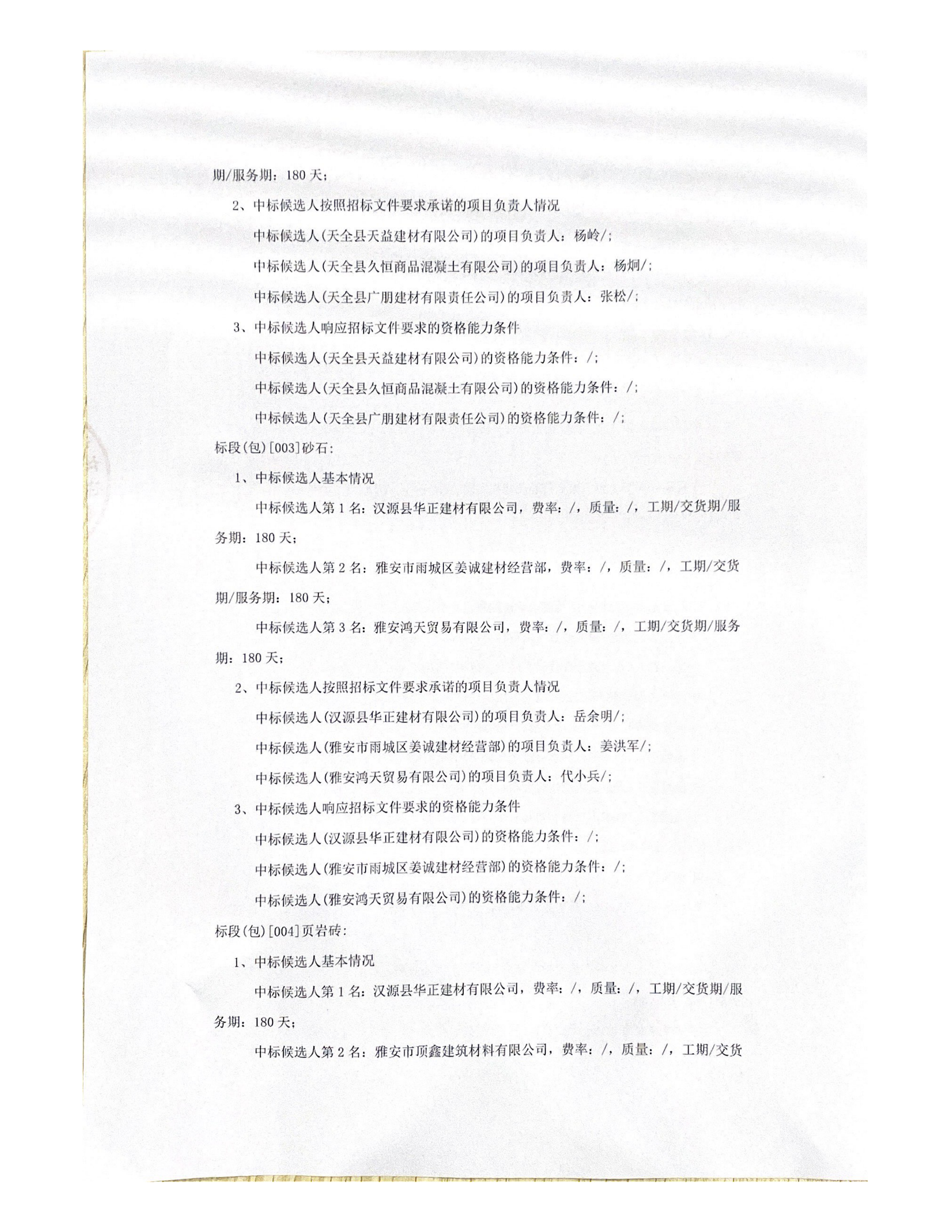 雅安味道核心區(qū)三雅園提升改造項(xiàng)目鋼筋、商品混凝土、砂石、磚、水泥供應(yīng)商中標(biāo)候選人公示