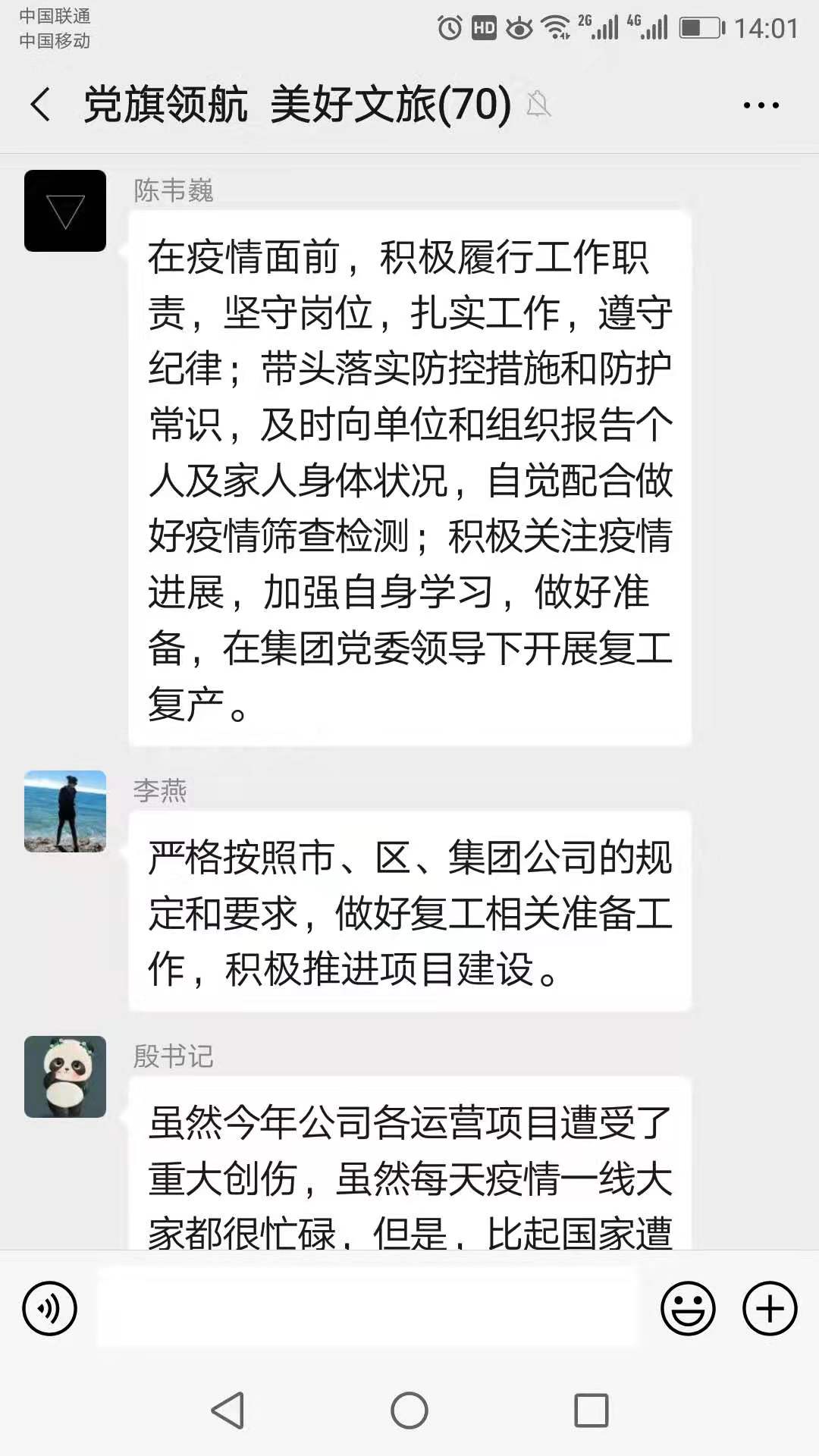 為團(tuán)結(jié)帶領(lǐng)黨員群眾打響防疫阻擊戰(zhàn),針對疫情防控期間不宜聚集、會面的特殊情況,2月10日,文旅集團(tuán)機(jī)關(guān)黨支部利用黨建微信群開展“文旅先鋒‘疫’不容辭”線上主題黨日活動。