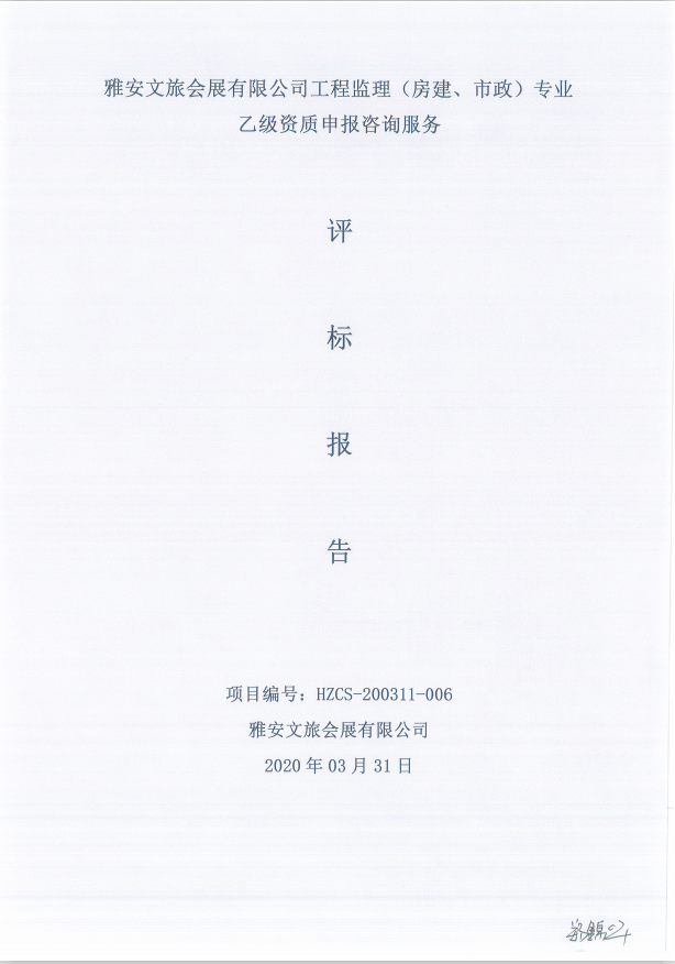 雅安文旅會(huì)展有限公司工程監(jiān)理(房建、市政)專業(yè)乙級(jí)資質(zhì)申報(bào)咨詢服務(wù) 成交公告公示