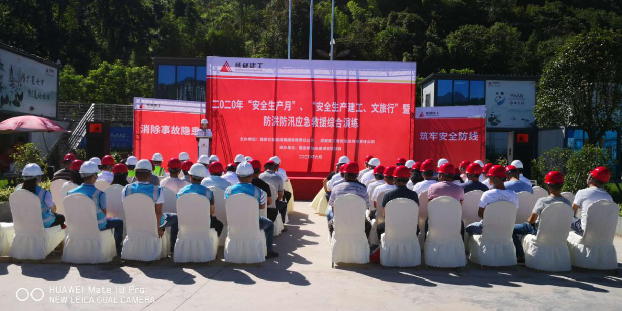 為切實(shí)增強(qiáng)防汛抗災(zāi)意識(shí),提高減災(zāi)救災(zāi)能力,確保雅安熊貓會(huì)展博覽館項(xiàng)目安全度汛。2020年6月24日,雅安文旅會(huì)展有限公司聯(lián)合成都建工雅安公司開展了以“強(qiáng)化施工安全理念,提升全員安全素質(zhì)”為目的、以“消除事故隱患,筑牢安全防線”為主題的“安全生產(chǎn)月”“安全生產(chǎn)建工、文旅行”暨安全生產(chǎn)防洪防汛應(yīng)急救援綜合演練活動(dòng)。市住建局、市文體旅游局、市應(yīng)急管理局、市水利局等相關(guān)部門領(lǐng)導(dǎo)到場(chǎng)指導(dǎo)。