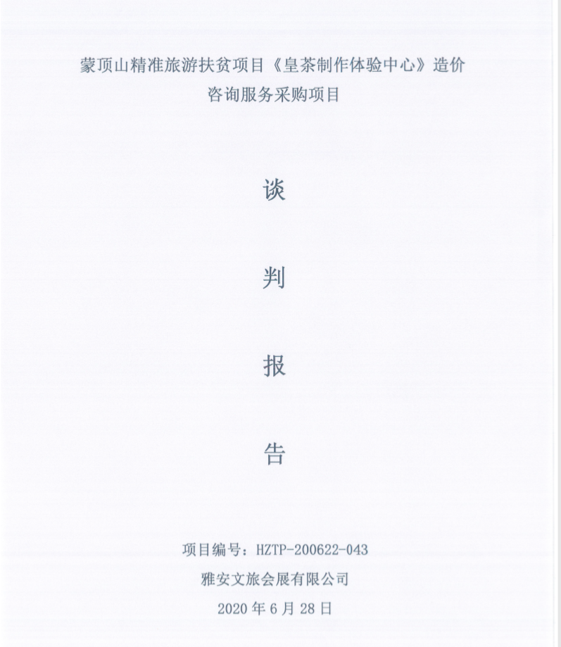 蒙頂山精準(zhǔn)旅游扶貧項(xiàng)目《皇茶制作體驗(yàn)中心》造價(jià)資訊服務(wù)采購項(xiàng)目