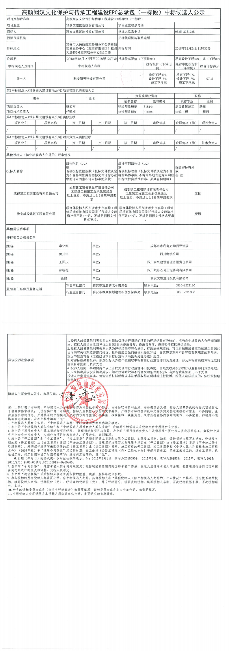 高頤闕漢文化保護與傳承工程建設EPC總承包(一標段)中標候選人公示