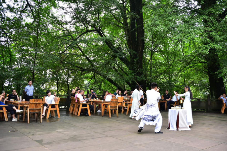 4日下午,旅行社一行走進(jìn)蒙頂山景區(qū),先后考察了蒙頂山景區(qū)甘露井、皇茶園等茶文化歷史遺跡,欣賞了蒙頂山非遺傳承龍行十八式茶技及天風(fēng)十二品茶藝并在蒙頂山天蓋寺皇茶樓就“名山旅游發(fā)展及如何吸引旅行社組團(tuán)到名山”進(jìn)行座談交流。