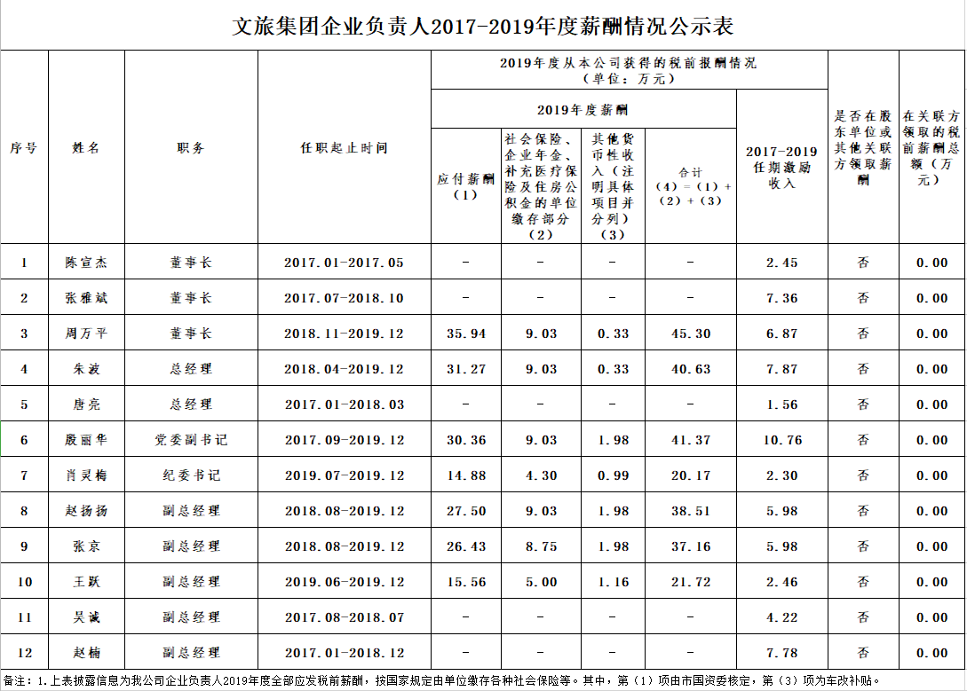 文旅集團(tuán)企業(yè)負(fù)責(zé)人2017-2019年度薪酬情況公示表