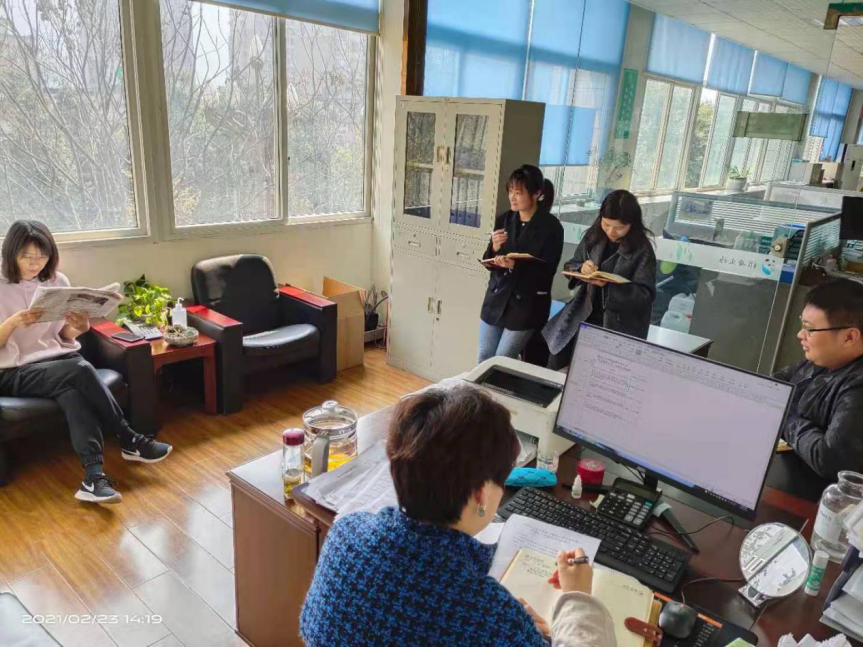 春節(jié)假期后的第二天起,綜合辦全體同志每日2:10準(zhǔn)時(shí)在辦公室集合,利用班前20分鐘學(xué)習(xí)《人民日?qǐng)?bào)》《求是》《雅安日?qǐng)?bào)》《政府工作通報(bào)》等報(bào)刊和內(nèi)部讀物。部門員工輪流當(dāng)老師,分別勾選出自己認(rèn)為具有學(xué)習(xí)價(jià)值的報(bào)道或公文,為部門同事認(rèn)真進(jìn)行解讀,其余同事跟讀學(xué)習(xí)。