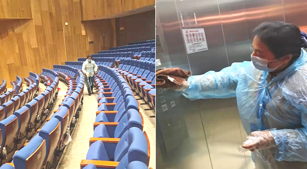 按市疾控中心消殺防疫工作要求,認(rèn)真開展疫情防控工作。一是認(rèn)真開展體溫監(jiān)測(cè),每日為員工監(jiān)測(cè)體溫并做好登記,發(fā)現(xiàn)體溫異常及時(shí)上報(bào);二是按疫情防控要求認(rèn)真開展消殺工作,每日會(huì)前、會(huì)后對(duì)會(huì)議桌桌面、座椅扶手、過(guò)道、電梯、客房等區(qū)域進(jìn)行消殺,做好消殺記錄,現(xiàn)場(chǎng)拍照并按時(shí)上報(bào)疾控中心;三是防疫物質(zhì)儲(chǔ)備到位到點(diǎn),在會(huì)場(chǎng)門口、餐廳、房間等區(qū)域放置口罩、消毒濕紙巾、消毒凝膠等防疫物質(zhì),安排專人主動(dòng)為代表們提供防疫物質(zhì)服務(wù)。