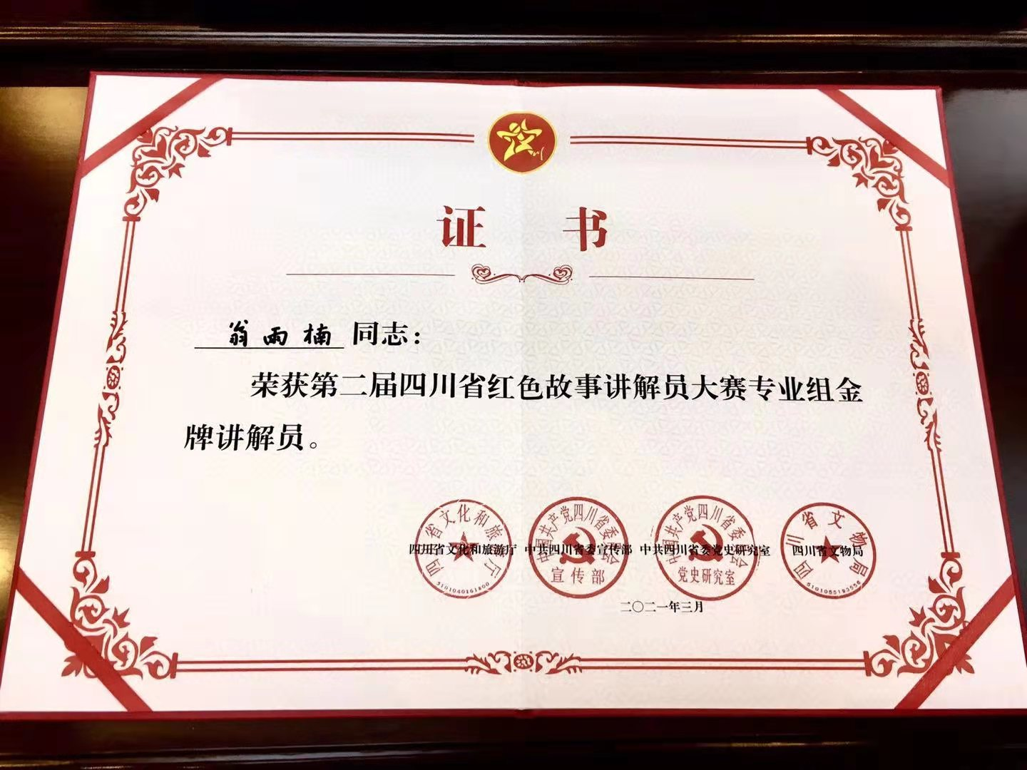 雅安文旅集團(tuán)員工榮獲“第二屆全省紅色故事講解員大賽專業(yè)組金牌講解員”稱號(hào)