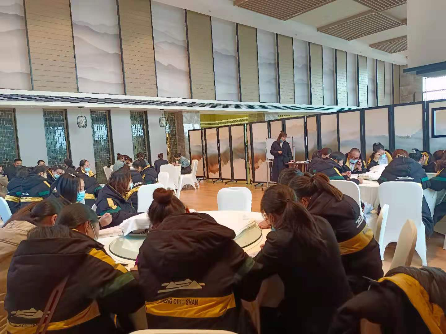 為提高蒙頂山旅游景區(qū)服務(wù)質(zhì)量,提升員工服務(wù)能力和服務(wù)水平,11月3日,由名山區(qū)總工會(huì)主辦,四川省名山蒙頂山旅游開(kāi)發(fā)有限責(zé)任公司、雅安思伽職業(yè)培訓(xùn)學(xué)校承辦的2021年省總工會(huì)幫扶服務(wù)項(xiàng)目“餐廳宴會(huì)擺臺(tái)”培訓(xùn)開(kāi)班儀式在蒙頂山假日度假酒店舉行。雅安市名山區(qū)總工會(huì)常務(wù)副主席牟建偉、雅安市思伽職業(yè)培訓(xùn)學(xué)校校長(zhǎng)李權(quán)、四川省名山蒙頂山旅游開(kāi)發(fā)有限責(zé)任公司董事長(zhǎng)張京出席開(kāi)班儀式。