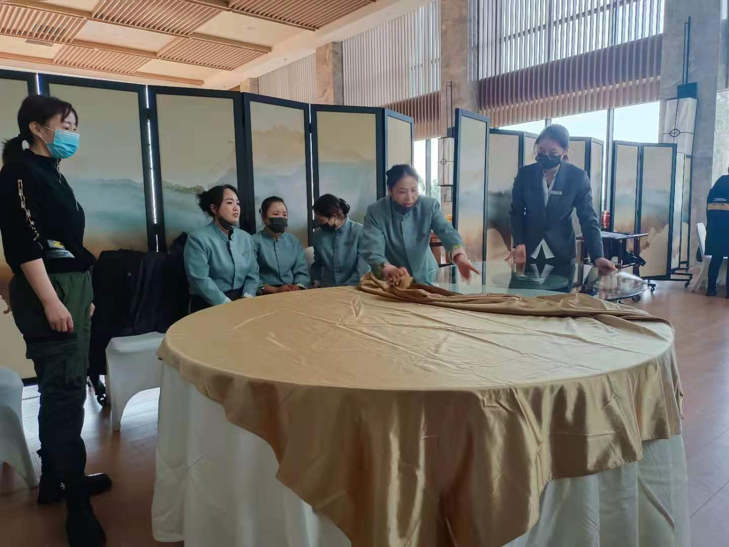 2021年省總工會(huì)專項(xiàng)幫扶服務(wù)項(xiàng)目 “餐廳宴會(huì)擺臺(tái)”培訓(xùn)開(kāi)班儀式在蒙頂山假日酒店舉行