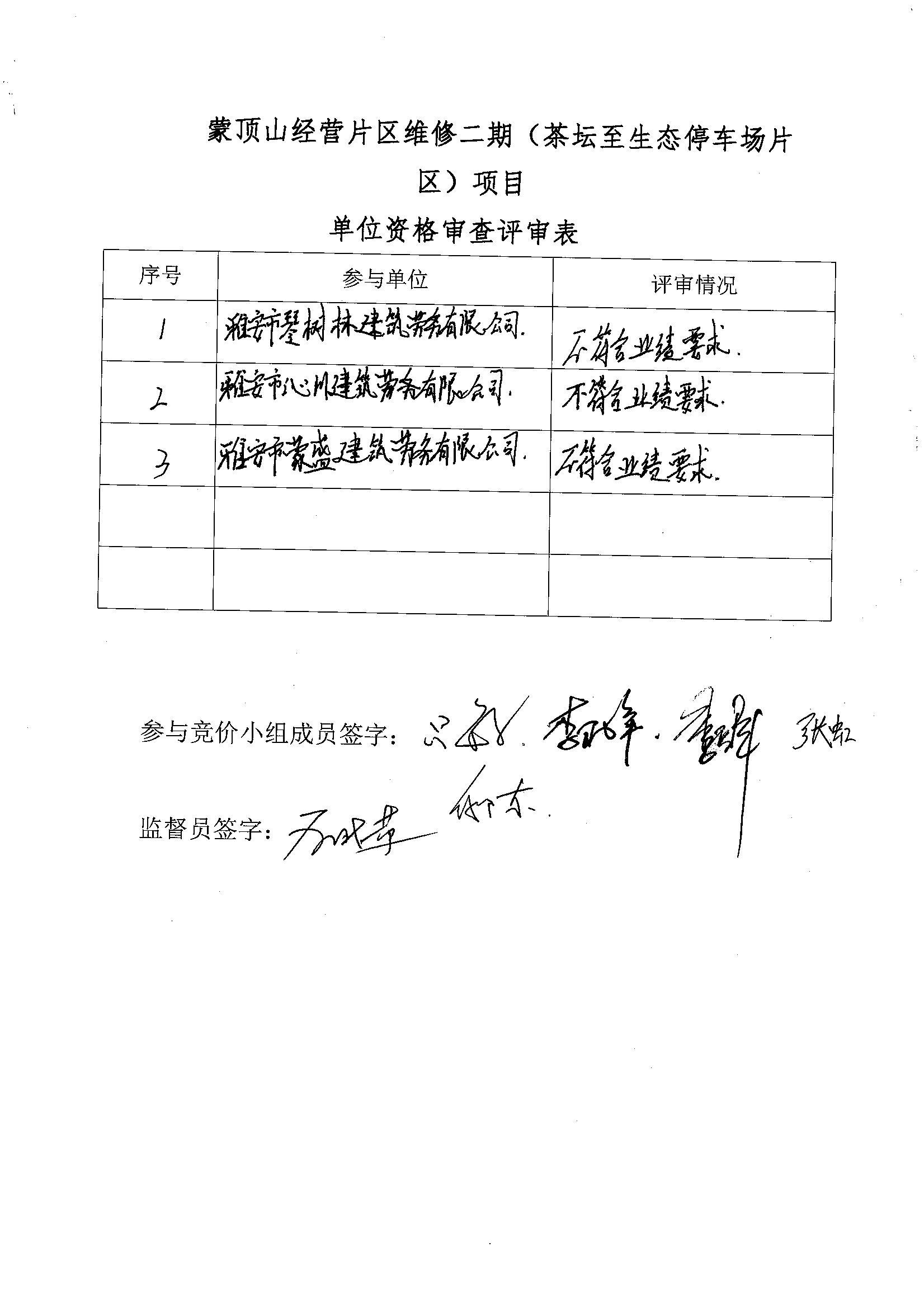 流標(biāo)蒙頂山經(jīng)營片區(qū)維修二期(茶壇至生態(tài)停車場片區(qū))項(xiàng)目流標(biāo)公告