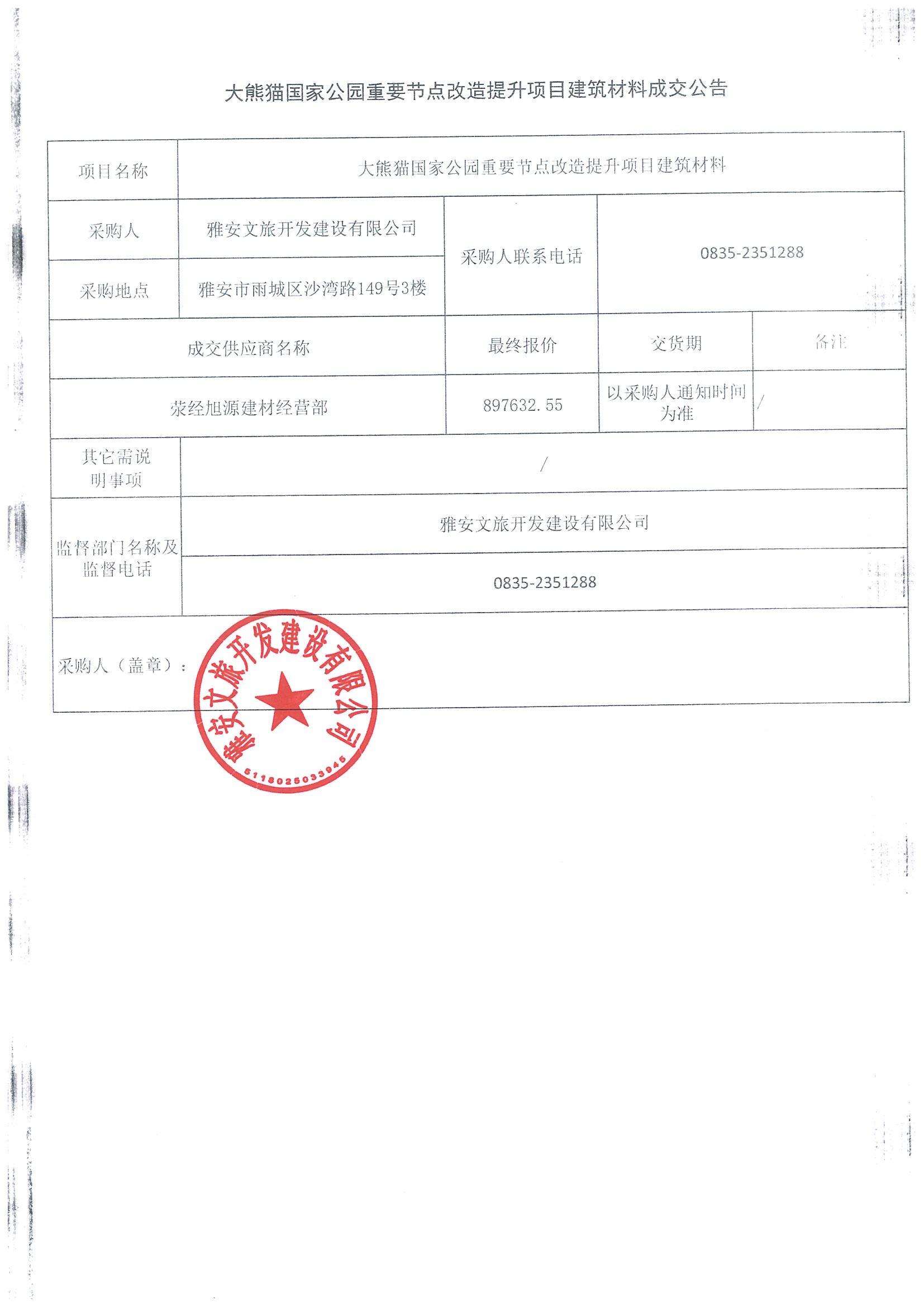 大熊貓國(guó)家公園重要節(jié)點(diǎn)改造提升項(xiàng)目建筑材料成交公告