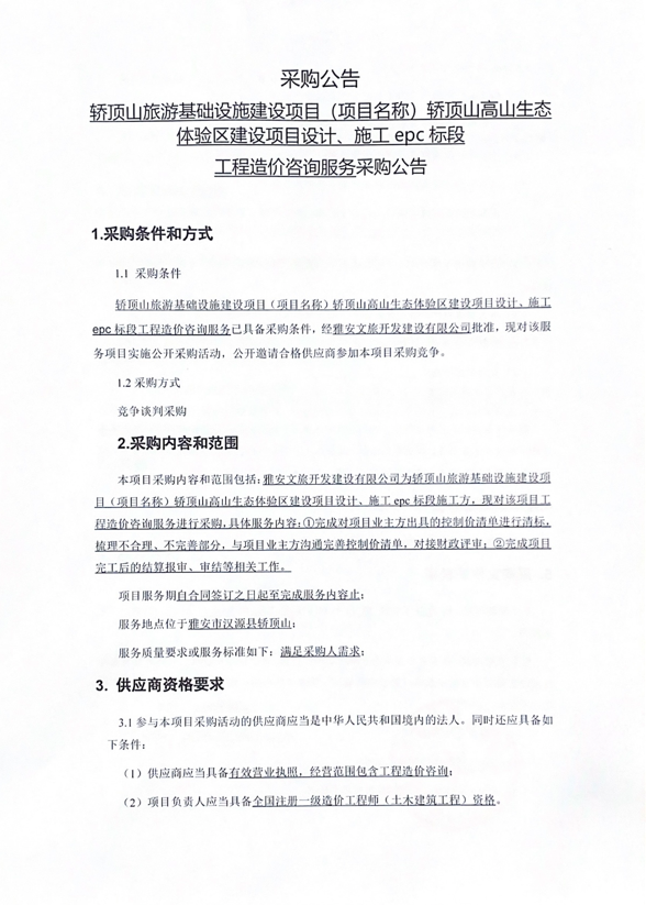 轎頂山旅游基礎(chǔ)設(shè)施建設(shè)項(xiàng)目(項(xiàng)目名稱(chēng))轎頂山高山生態(tài)體驗(yàn)區(qū)建設(shè)項(xiàng)目設(shè)計(jì)、施工epc 標(biāo)段工程造價(jià)咨詢(xún)服務(wù)采購(gòu)公告