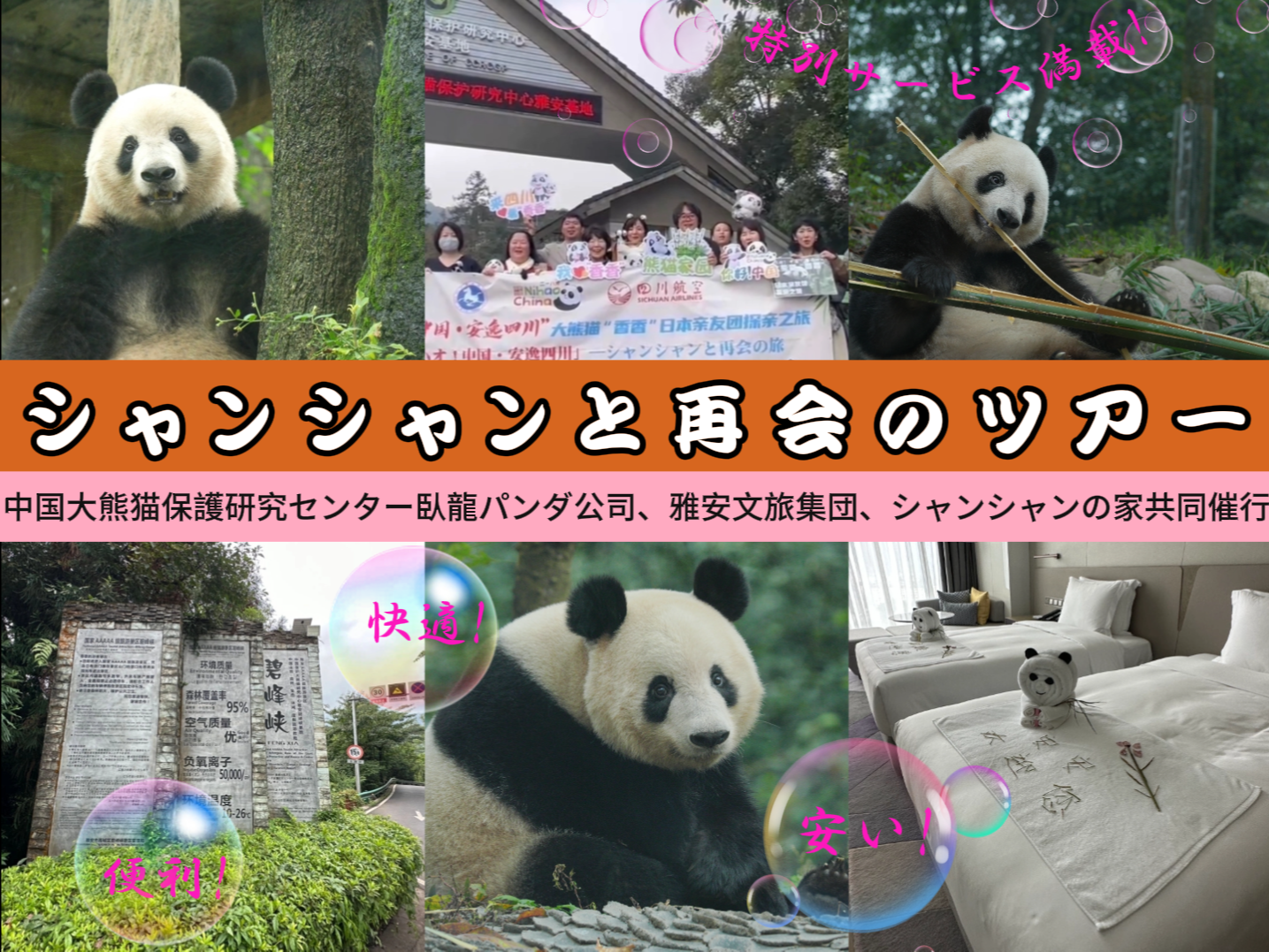 二是共推“看香香 游天府”定制旅游。雙方簽署定制旅游合作協(xié)議,本著平等自愿原則,各自發(fā)揮優(yōu)勢(shì),就“看香香 游天府”特色定制旅游項(xiàng)目開(kāi)展合作運(yùn)營(yíng),引導(dǎo)日本的“鐵桿粉絲”們組團(tuán)到雅安看香香,以獨(dú)家資源和優(yōu)質(zhì)服務(wù)亮出“在上野排隊(duì)看不清香香,到雅安實(shí)現(xiàn)香香全自由”的金字招牌。持續(xù)開(kāi)展大熊貓文化傳播活動(dòng),持續(xù)開(kāi)發(fā)特色熊貓文化體驗(yàn)項(xiàng)目,大力推動(dòng)兩國(guó)青少年文化交流互動(dòng)。