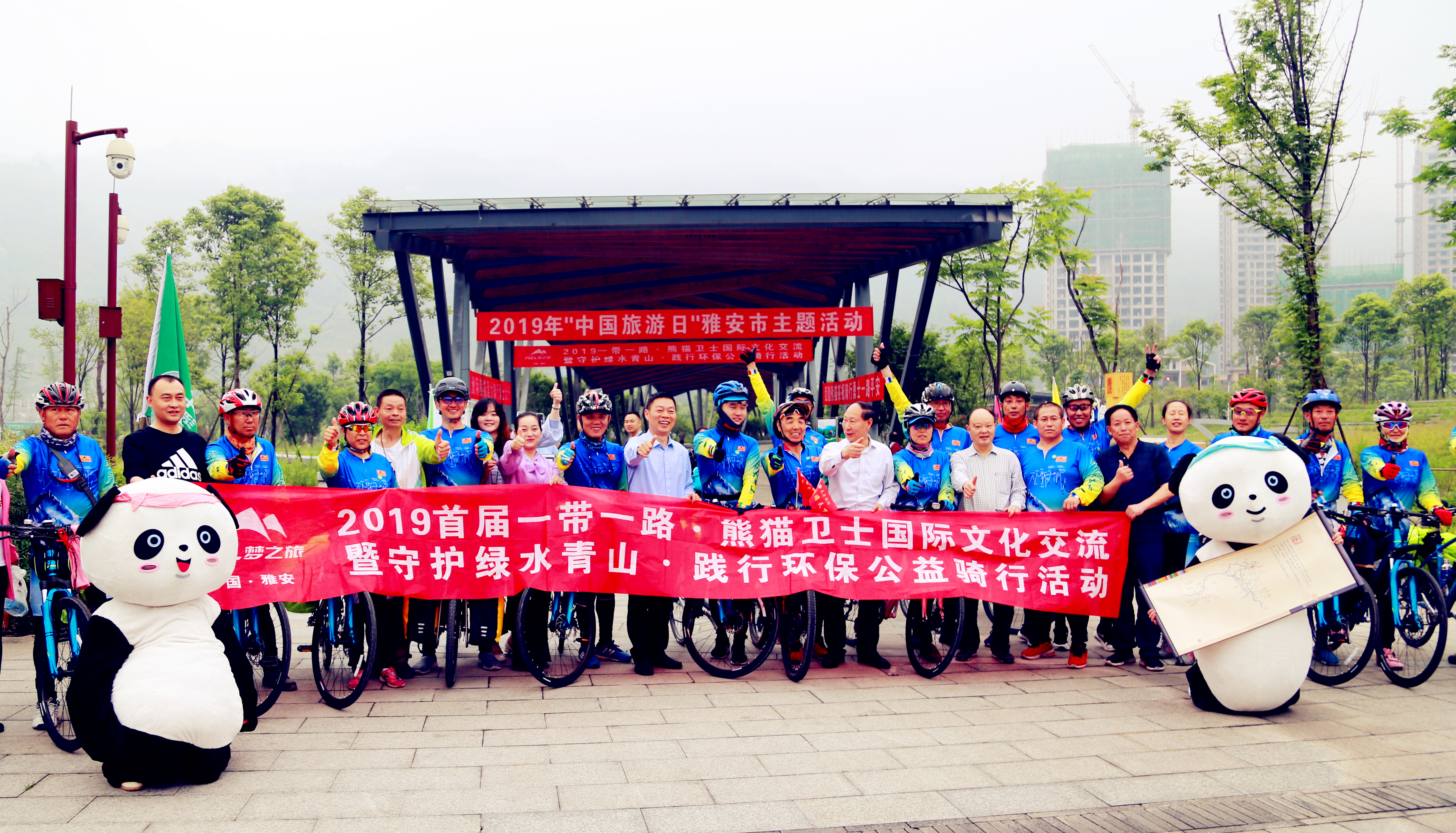 5月18日,“2019中國·雅安首屆一帶一路、熊貓之旅國際文化交流暨守護綠水青山、踐行環(huán)保公益騎行”活動出征儀式在雅安市熊貓綠島舉行。雅安市人大副主任李勇宣布出發(fā),24名騎手從318川藏南線起點雅安出發(fā),前往拉薩,隨后轉向中法、中非兩條騎行線路,以此壯舉禮敬新中國成立70周年和大熊貓科學發(fā)現(xiàn)150周年。雅安文旅集團向騎行隊贈送“團圓熊貓茶”,為艱苦的行程送上健康的保障,并向世界發(fā)出雅安的問候。