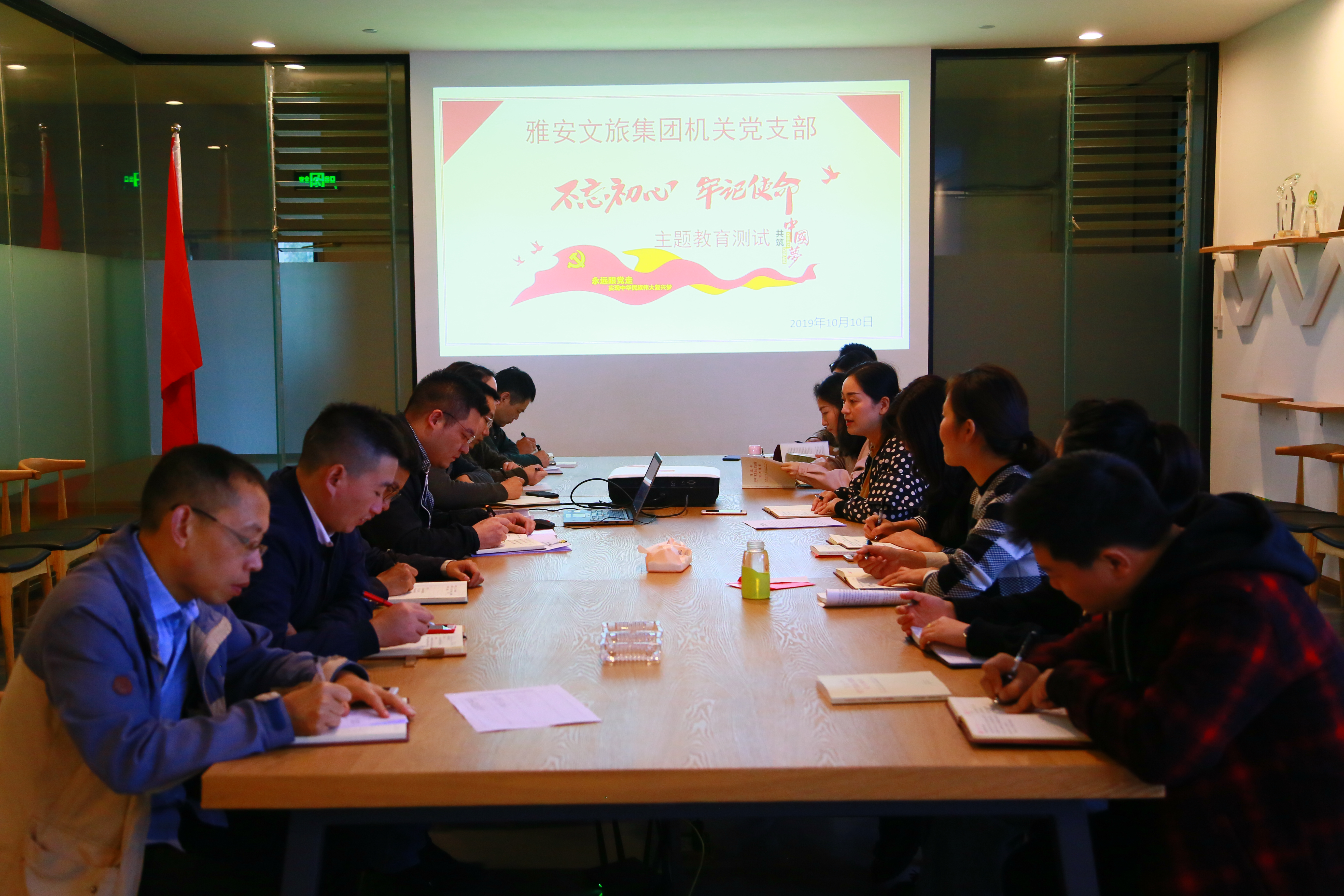 10月10日,雅安文旅集團(tuán)機(jī)關(guān)支部開(kāi)展“不忘初心、牢記使命”主題教育理論學(xué)習(xí)和知識(shí)考評(píng),對(duì)主題教育相關(guān)理論知識(shí)進(jìn)行深入學(xué)習(xí),首次開(kāi)展主題教育“應(yīng)知應(yīng)會(huì)知識(shí)”閉卷測(cè)試,牢牢把握守初心、擔(dān)使命、找差距、抓落實(shí)的總要求,扎實(shí)推進(jìn)主題教育深入開(kāi)展。機(jī)關(guān)支部全體黨員參加學(xué)習(xí)測(cè)試,集團(tuán)黨委副書(shū)記、機(jī)關(guān)支部書(shū)記殷麗華主…